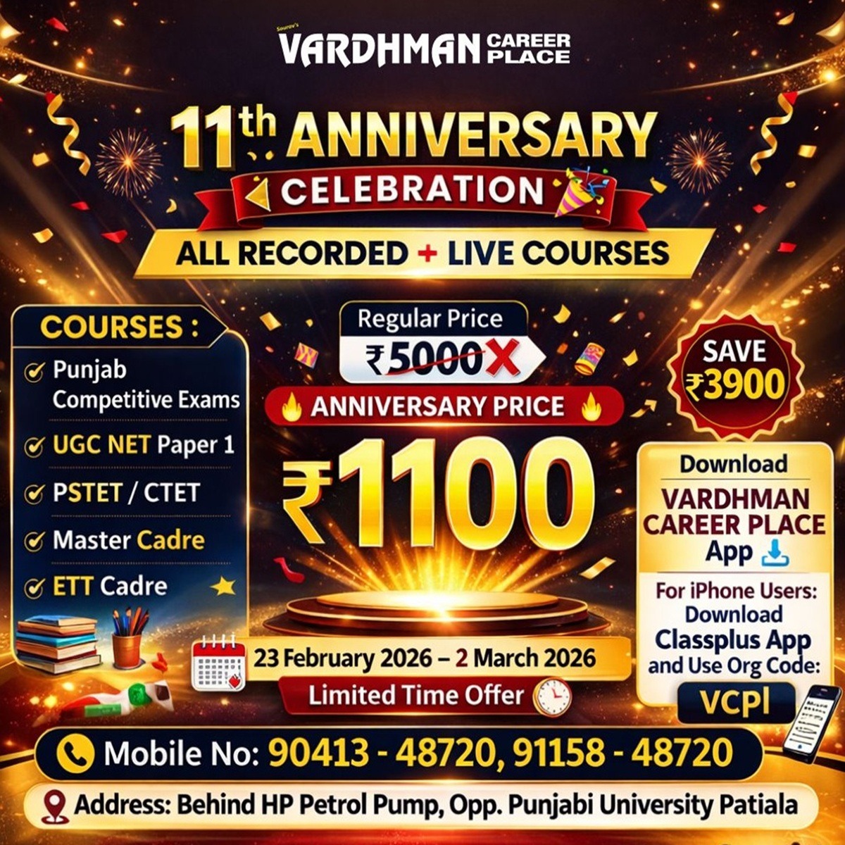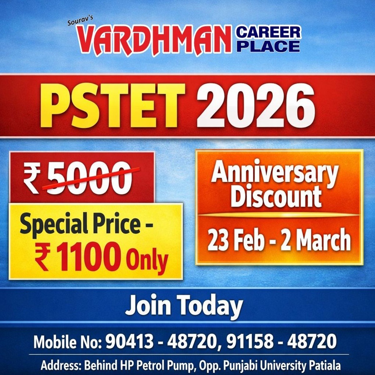 ਪੰਜਾਬ ਦੇ ਮਾਲਵੇ ਇਲਾਕੇ ਦਾ ਰਿਆਸਤੀ ਸ਼ਹਿਰ ਪਟਿਆਲਾ ਆਪਣੇ ਸਿੱਖਿਆ ਅਦਾਰਿਆਂ ਦੇ ਲਈ ਪ੍ਰਸਿੱਧ ਹੈ। ਇਹਨਾਂ ਸਿੱਖਿਆ ਦੇ ਅਦਾਰਿਆਂ ਵਿਚ ਅਹਿਮ ਸਥਾਨ ਧਰੁਵ ਤਾਰੇ ਵਾਂਗ ਚਮਕਣ ਵਾਲੇ ਵਰਧਮਾਨ ਕਰੀਅਰ ਪਲੇਸ ਦਾ ਆਉਂਦਾ ਹੈ ਜੋ ਕਿ ਪੰਜਾਬੀ ਯੂਨੀਵਰਸਿਟੀ ਦੇ ਬਿਲਕੁਲ ਸਾਹਮਣੇ ਮੌਜੂਦ ਹੈ।